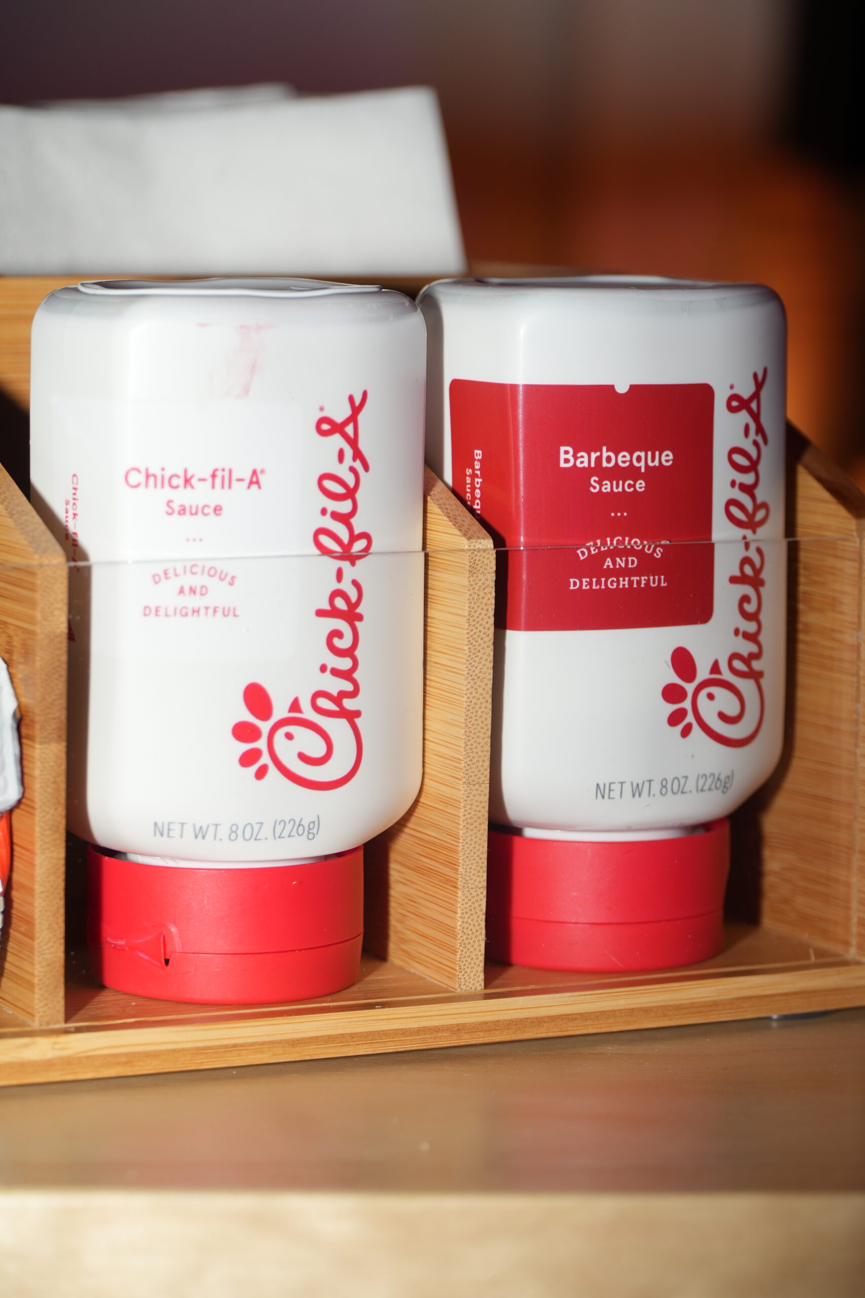 Food, condiments, napkins, and to-go bags